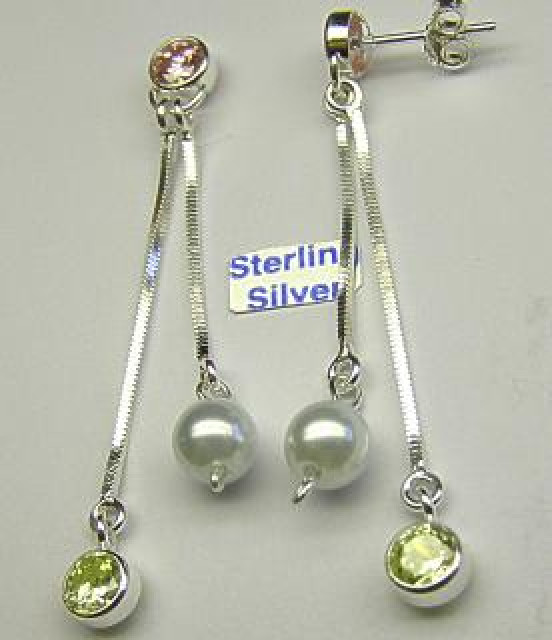 gestempelt 925. Der Obere Stein ist ein zartes rosa, der untere ist ein helleres peridotgruen. Schlangenkette in Quadrat gepresst dient als Hänger. Ein sehr gelungenes Perlen-Steine-Ohrstecker, das außerdem auch lebendig wirkt. Zirkoniasteine im Brillantschliff. Allergiefrei ! (Der Juwelierpreis liegt bei 39.- bis 59.-Euro)